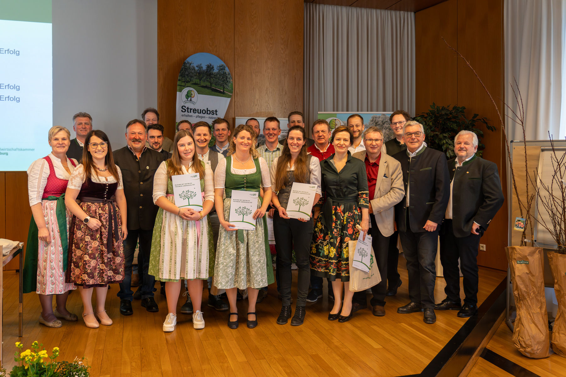 Für das Erlangen des Zertifikates ist eine schriftliche, mündliche und praktische Prüfung notwendig. Für die praktische Prüfung müssen Obstbäume geschnitten werden. Der Prüfling hat zu begründen, warum er diese Maßnahme setzt und welche Reaktion beim Wachstum und Fruchten der Obstbäume zu erwarten ist. Insgesamt 20 Teilnehmerinnen und Teilnehmer haben im November 2023 den LFI-Zertifikatslehrgang „Baumwärter:in/Obstbaumpfleger:in“ positiv abgeschlossen – Anfang März erhielten sie im Hotel Heffterhof ihre Zertifikate. Dankenswerterweise kleideten die Raiffeisen-Warenbetriebe (Lagerhaus) als Sponsor-Beitrag die fertigen Baumwärterinnen und Baumwärter mit Arbeitshose und Arbeitsshirt ein. Die Baumschule Gurtner spendete einen Obstbaum.