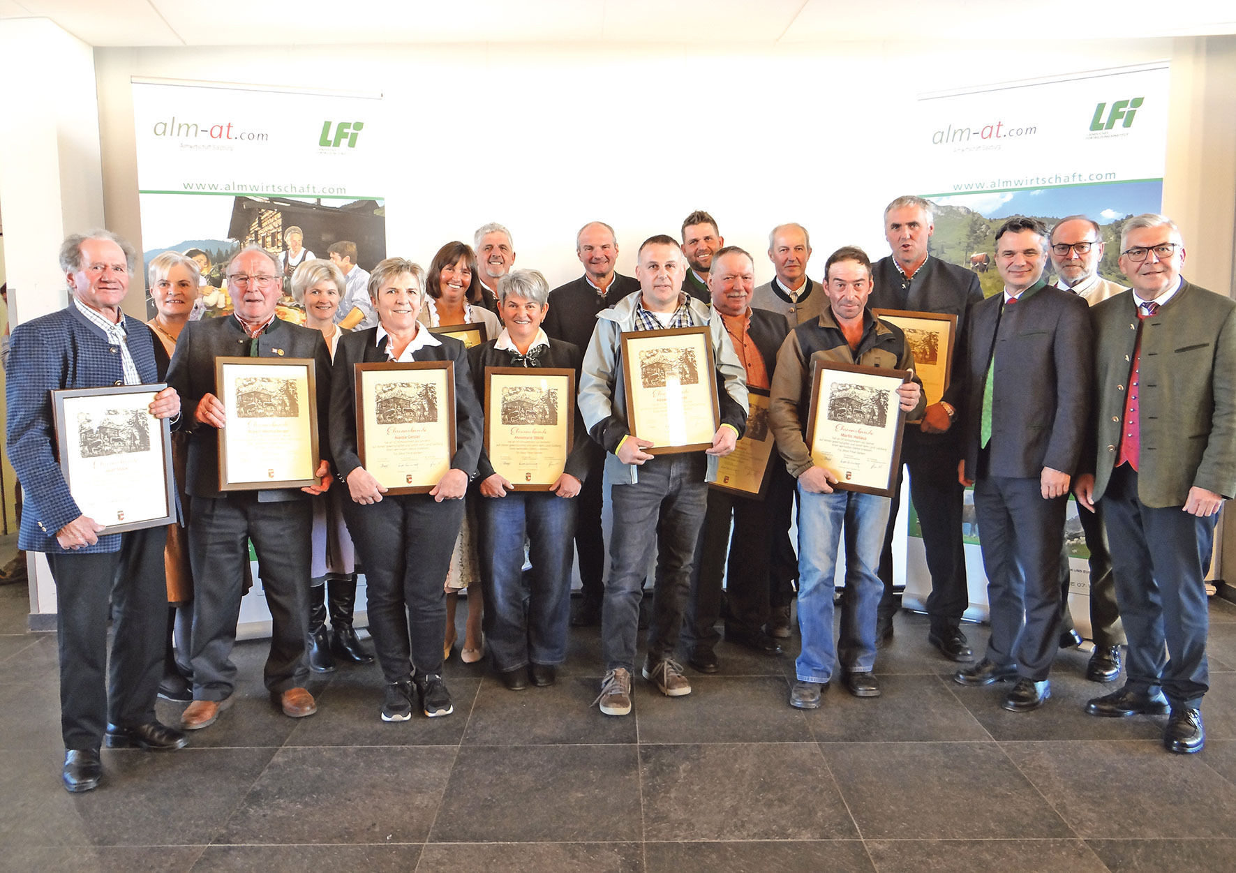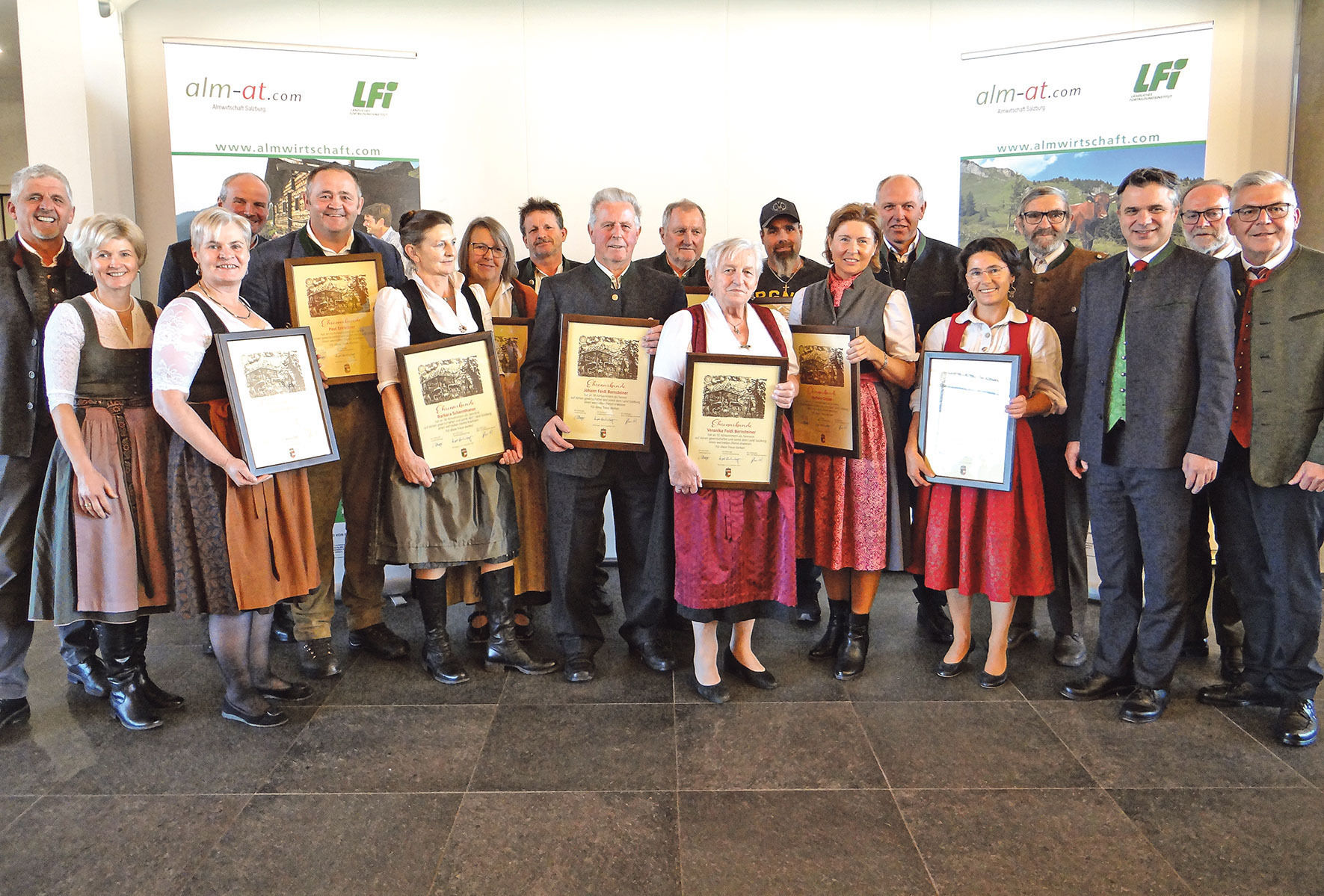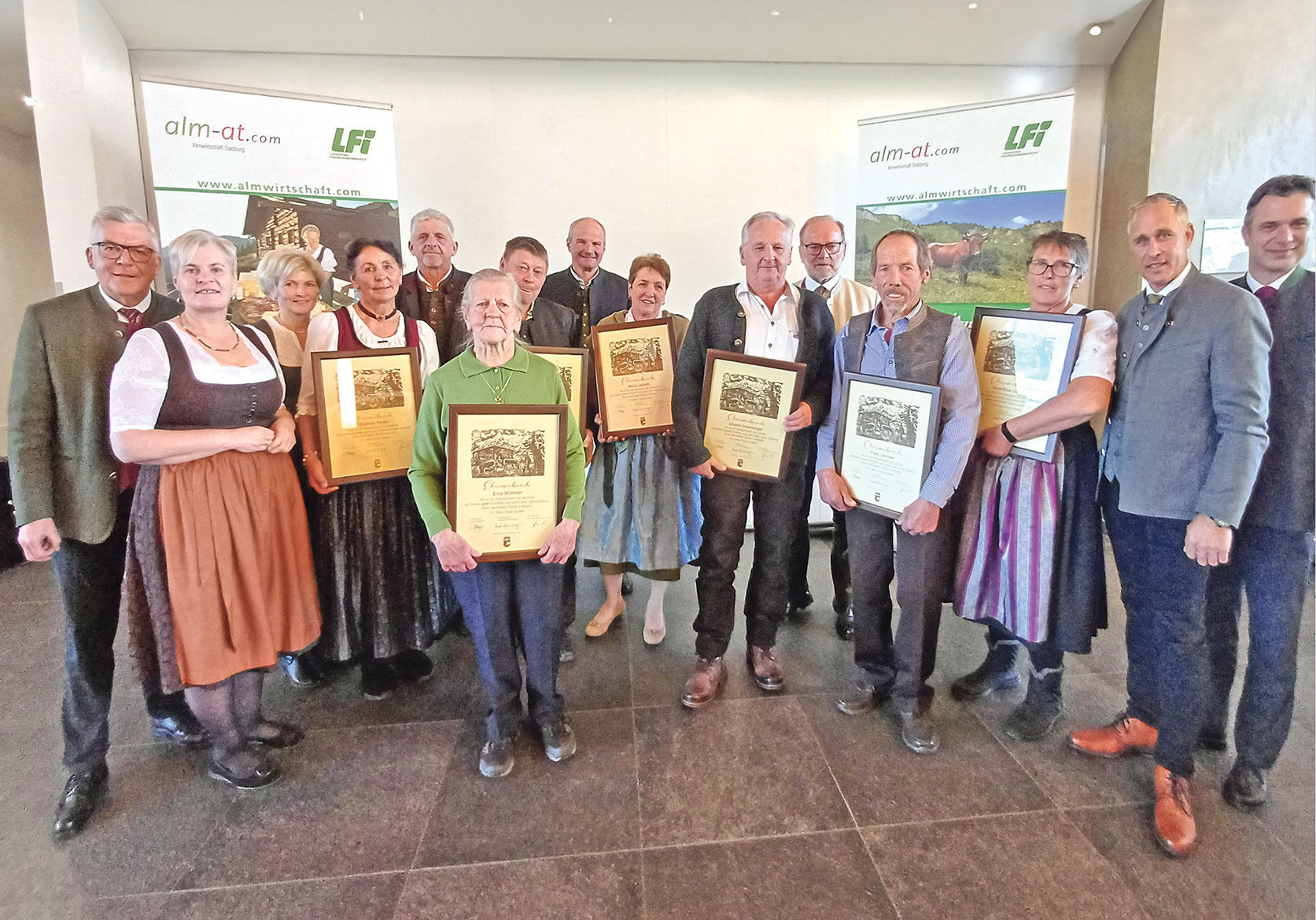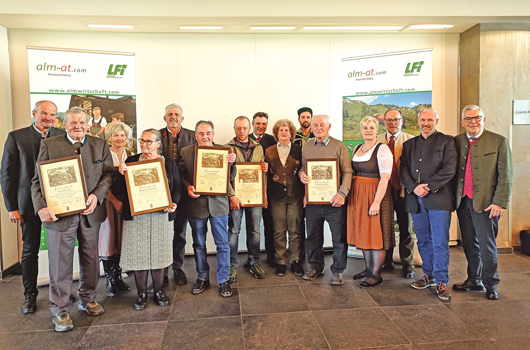 Eva Maria Hochwimmer, Moaalm, 21 Almsommer (AS); Bernhard Hochwimmer, Moaalm, 23 AS; Manfred Egger, Kramerochsenalm, 21 AS; Hans-Jörg Proßegger, Salzachalm, 23 AS; Georg Meilinger, Seebachalm 24 AS; Barbara Hofer, Walsbergalm, 26 AS; Ferdinand Hofer, Walsbergalm, 39 AS; Mathias Blaikner, Hauseralm, 33 AS; Alois Bacher, Mühlachalm, 46 AS; Anton Innerhofer, Dorferwirtsalm, 62 AS; Ferdinand Steger, Tanzlehenalm, 65 AS