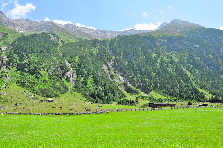Die Almzeit dauert auf der Schachenalm bis Anfang Oktober, um den Heimbetrieb zu entlasten. Das geerntete Heu und die Silage von den 6 ha Mähflächen werden noch auf der Alm verfüttert. Erst dann machen sich die eigenen 44 Stück Rinder auf einen außergewöhnlichen Heimweg, der Mensch und Tier fordert. „Idealerweise liegen 30 cm Schnee am Krimmler Tauern, dann gehen die Tiere nicht am harten Fels, denn der Weg führt ab der Alm rauf zum Grenzpass am Westende der Hohen Tauern auf 2.665 m, den Grenzübergang zwischen Österreich und Italien“, so Josef. Bis zu 14 Stunden dauert die harte, beschwerliche Tour im Hochgebirge, bis auf der Adleralm in Hl. Geist Rast eingelegt wird und am nächsten Tag der Almabtrieb bis zum Heimbetrieb in St. Jakob fortgesetzt wird. Viele erfahrene Helfer braucht dieser herausfordernde Abtrieb, der seit Generationen mit Herzblut gelebt wird. Zuerst heißt es aber den Almsommer auch zu genießen, sich der guten Vegetation und somit der guten Milchleistung zu erfreuen und die wahren Werte des Lebens den Enkelkindern zu vermitteln.