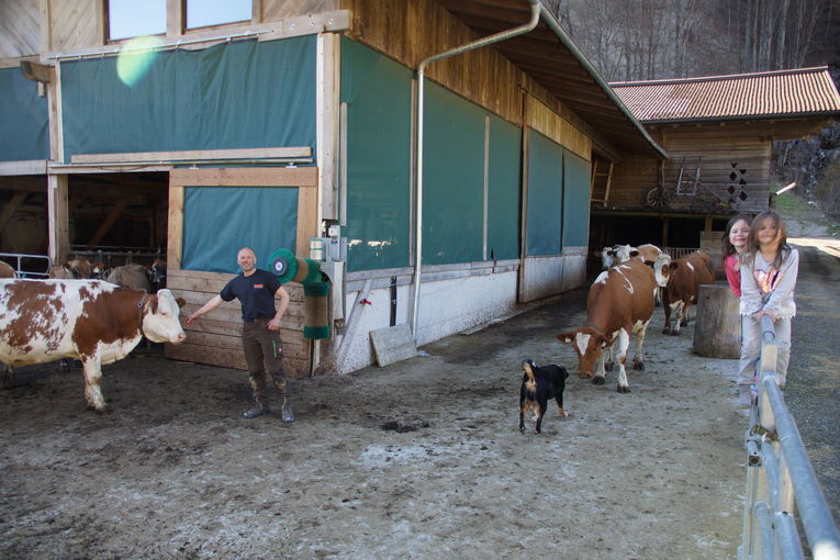 11 Milchkühe (Fleckvieh und Jersey), 23 Jungtiere, 10 Hühner, Zwergziegen, Hasen; 21 ha Grünland (mehrmähdige Wiesen, davon 15 ha Steilfläche), 5 ha einmähdige Naturschutzflächen, 38 ha Hutweiden, 15 ha Eigenwald, 172 ha Gemeinschaftswald