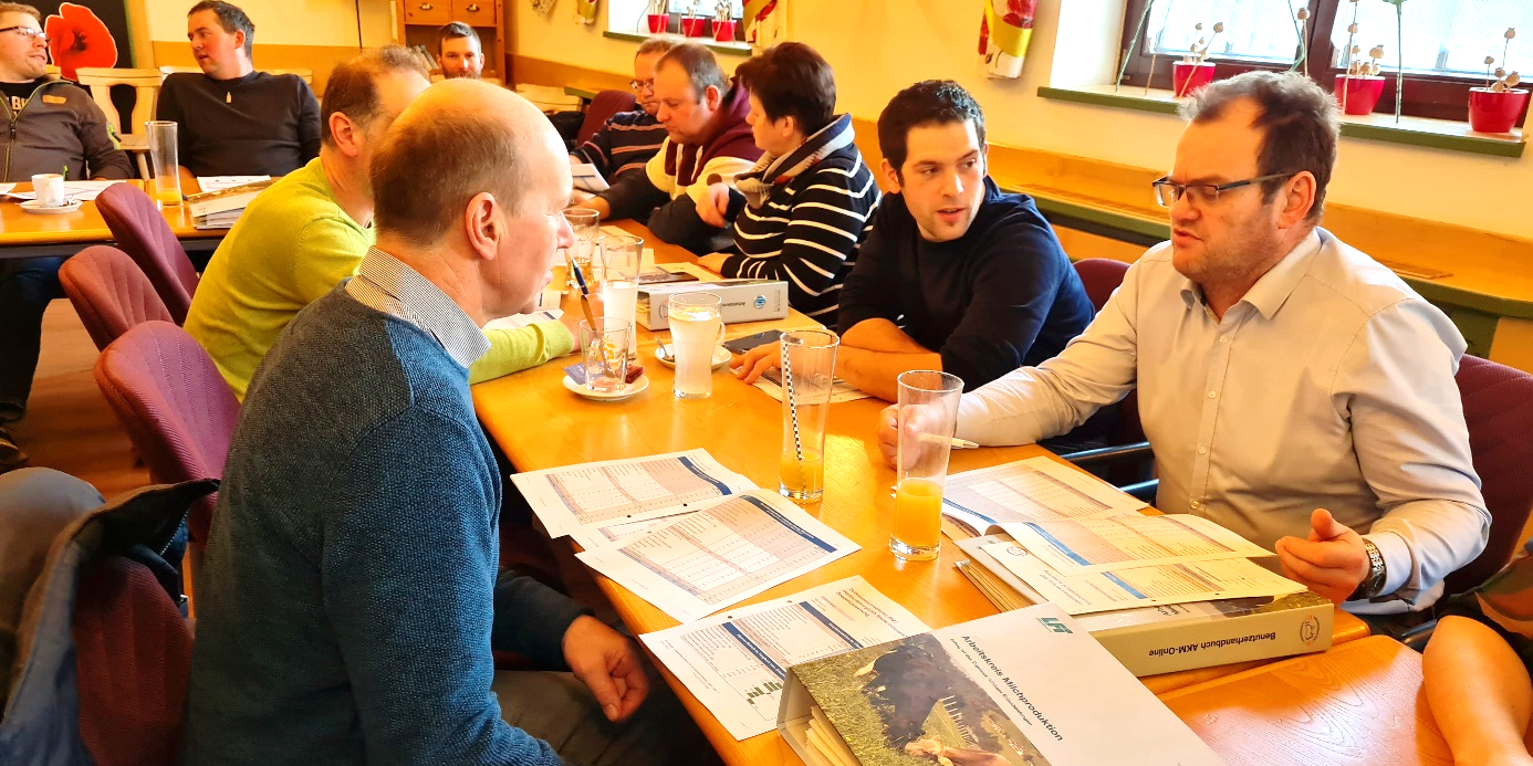 Einmal im Jahr treffen sich die Mitglieder der Arbeitskreise Milchproduktion zum wichtigsten Arbeitskreistreffen des Jahres - der offenen Ergebnisübergabe. Dabei werden die Ergebnisse der Betriebszweigauswertung vorgestellt, besprochen und diskutiert. Die Betriebszweigauswertung ist das Herzstück der Arbeitskreisberatung. Jedes Arbeitskreismitglied wertet mit Unterstützung der Arbeitskreisleiter jährlich seinen Betriebszweig Milchproduktion aus. Die Datenerfassung geschieht kinderleicht im Programm AKM-Online. Diese ist für die Arbeitskreismitglieder online aufrufbar und dient nicht nur der Erfassung der Daten, sondern auch deren Auswertung und übersichtlichen Darstellung in verschiedenen Berichten.
