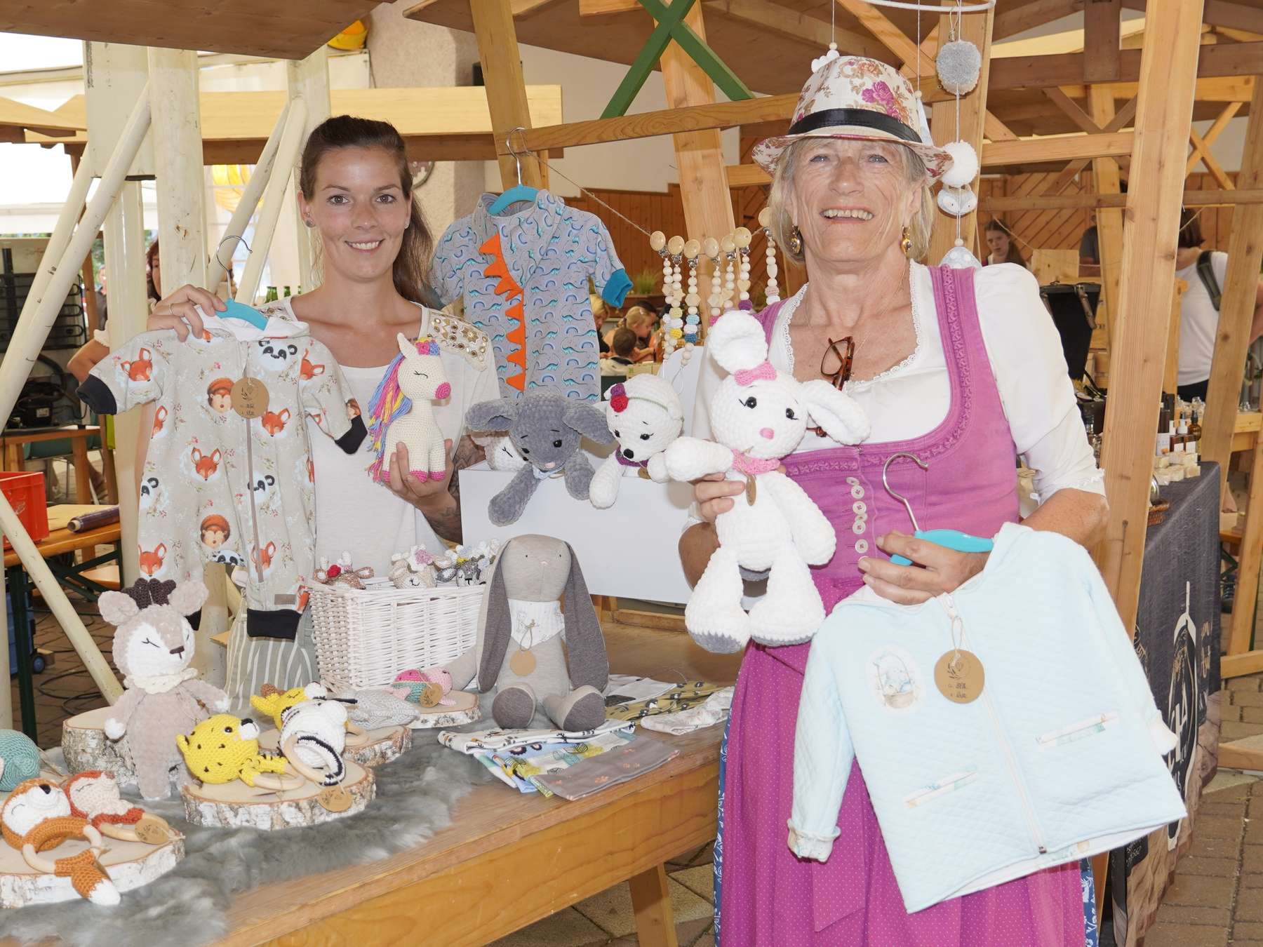 Organisatorin Andrea Eschbacher (re.) bei Eva Hirschbichler, „Saphia“ Baby- und Kinderkleidung. © Dürnberger