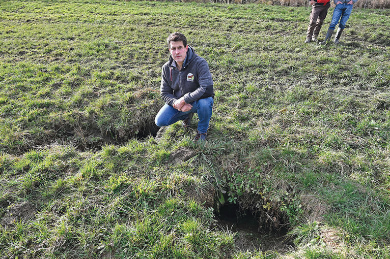 Für die Bäuerinnen und Bauern, die hier in Ruhgassing und Gerling ihre Wiesen haben, ist es höchst an der Zeit, dass man gegen den Biber etwas unternimmt. „Der Biber hat sich in den letzten Jahren rasant vermehrt, es kann so einfach nicht weitergehen“, sagt Siegfried Deutinger. Offiziell ist es ein einziges Biberpärchen, das sich hier angesiedelt hat. „Wenn wir uns ansehen, wie viele Biberburgen es alleine an dem wenige Kilometer langen Entwässerungsgraben gibt, dann sind das mindestens zehnmal so viele Tiere, die hier leben.“ Das bestätigte sich auch beim Lokalaugenschein in der Vorwoche mit BBK-Obmann Klaus Vitzthum. Alle fünf bis zehn Meter erkennt man einen Biberweg in die Wiese hinein. Beinahe schon wöchentlich entstehen am Graben neue Biberdämme, die aufwändig entfernt werden müssen. Rechtlich ist das erlaubt, weil das Gewässer keinen Lebensraum für den Biber bietet. Der Schaden für die Bäuerinnen und Bauern ist dennoch enorm. BBK-Obmann Klaus Vitzthum: „Wir reden hier nicht nur von zusätzlichem Arbeitsaufwand, sondern von hohen Wiederherstellungskosten. Rechnet man die Arbeitsstunden der Baumaschinen und das Material für die Verfüllung auf, so verschlingt die Beseitigung eines Biberbaues schnell einmal 1.000 Euro.“ Mehrmals wurde daher versucht, über das Land Entschädigungen zu erwirken – bislang wurden die Betriebe allerdings nur vertröstet. Vitzthum: „So kann es nicht weitergehen. Wenn die Gesellschaft den Biber haben will, dann muss sie auch für die Schäden auf privaten Flächen aufkommen.“