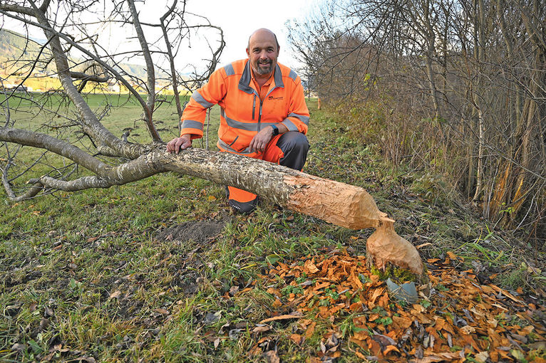 Michael Gassner, Hanselbauer aus Saalfelden, kann nur noch den Kopf schütteln. Mitten in seiner Wiese klaffen zwei tiefe Löcher mit mehr als einem Meter Durchmesser. „Wenn du da mit dem Traktor reinfährst, dann musst du Glück haben, dass du nicht umkippst“, wirkt er ein wenig verzweifelt. Verantwortlich für das große Loch ist ein Biber. Die Tiere graben ihre Bauten mit langen Röhren in die Uferböschungen. Am Grundstück von Michael Gassner reichen diese Biberburgen weit ins Feld hinein, ein besonders großes Loch liegt mehr als 20 Meter von der Bachkrone entfernt. Leider ist das mittlerweile kein Einzelfall, wie auch das Beispiel von Grundnachbar Sepp Hirschbichler zeigt. Er ist im Vorjahr bei der Heuernte mit dem Traktor und dem Schwader in einen solchen Biberbau eingebrochen. Dabei hatte er noch riesiges Glück, dass es keinen Personenschaden gab. „Man kann den Bau von oben natürlich nicht erkennen. Wenn man dann mit einer Maschine darüberfährt, gibt der Boden plötzlich nach. Wenn das an der Böschung passiert und der Traktor ins Wasser stürzt, dann birgt das eine riesige Gefahr“, ist der Landwirt überzeugt. Erst als man mit einem Bagger das Loch zugeschüttet hat, wurden die Dimensionen so richtig offensichtlich: „Der Bau hatte einen Durchmesser von rund zwei Metern, wir haben insgesamt fünft Tandemkipper an Material in des Loch gefüllt. Diese Menge muss man sich einmal vorstellen.“