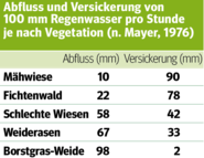 Während auf einer Mähwiese nur zehn Millimeter oberflächig abfließen und 90 % aufgenommen werden, fließen auf einer Bürstlingwiese 98 % oberflächig ab. © Archiv