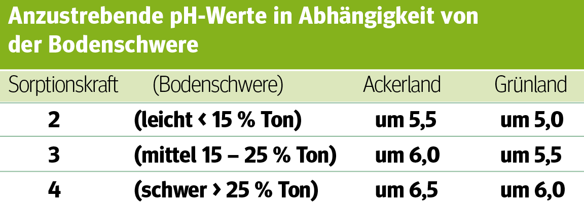 Bei leichten Böden genügt daher ebenso wie auf stark humosen Böden ein niedrigerer pH-Wert.
