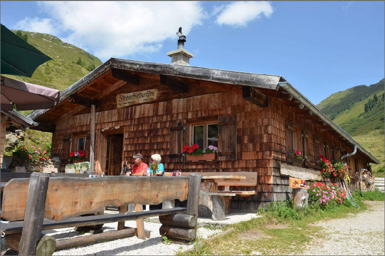 Die Steinerhinteralm ist in einem wunderschönen Talkessel am Ende des Dürnbachtales eingebettet. Links und rechts rauschen die Bäche zu Tal, Wasserknappheit kennt man auf dieser Alm nicht. Deswegen wird auch ein eigenes Kraftwerk betrieben. Die Stromversorgung für die nötigen Arbeiten ist somit gegeben. Die Milch wird zur Gänze an die Pinzgau Milch geliefert. Für den Almausschank werden Produkte wie die Buttermilch von der Molkerei wieder zugekauft. Auf die Regionalität wird beim Zukauf von Käse und den Wurstprodukten großer Wert gelegt. „Eine gute Jause und ein g‘schmackiger Kaiserschmarrn mit Schwarzbeerkompott und ein Zirbenschnapserl, mehr braucht es nicht“, schmunzelt Liesi.