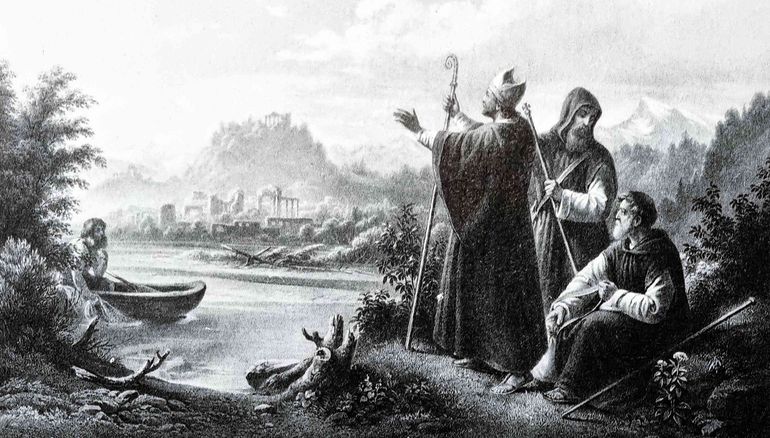 Rupert fand bei seiner Ankunft die Trümmer des römischen Juvavum vor und gründete St. Peter und Nonnberg.