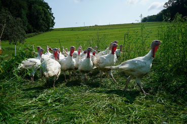 Die Puten kommen als Küken zum „Mitterhofer“. Rund 18 bis 22 Wochen (weibliche Tiere früher) hält Franz das Geflügel Tag und Nacht auf der Weide mit großräumigem Unterstand, wo auch die Hauptfütterung stattfindet. Mit einem Schlachtgewicht von 14 bis 16 kg wird das Fleisch in den genannten Vertriebszweigen angeboten. Neben dem Frisch- und Grillfleisch findet sich das Geflügel in Schinken, Pulled Pute, Sulze und vielen anderen Produkten wieder.