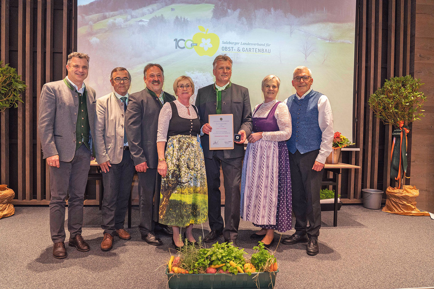 Der Landesverband für Obst-und Gartenbau feierte am vergangenen Wochenende sein 100-jähriges Bestehen mit einem Festakt und einer großen Landesobstausstellung in Bischofshofen. Die Festrede wurde von der ehemaligen ORF-Moderatorin Andrea Aglassinger gehalten und fand großen Zuspruch bei den 250 geladenen Vertretern der Obst- und Gartenbauvereine sowie den Ehrengästen. Landesrat Josef Schwaiger beglückwünschte den Landesverband zu seinen 44 Vereinen mit 9.000 Mitgliedern und bedankte sich für die geleistete Arbeit vor Ort in den Gemeinden, wo gerade in der heutigen Zeit die Liebe zum Garteln, zur Verwertung des eigenen Obstes und zur Natur wiederentdeckt wird.