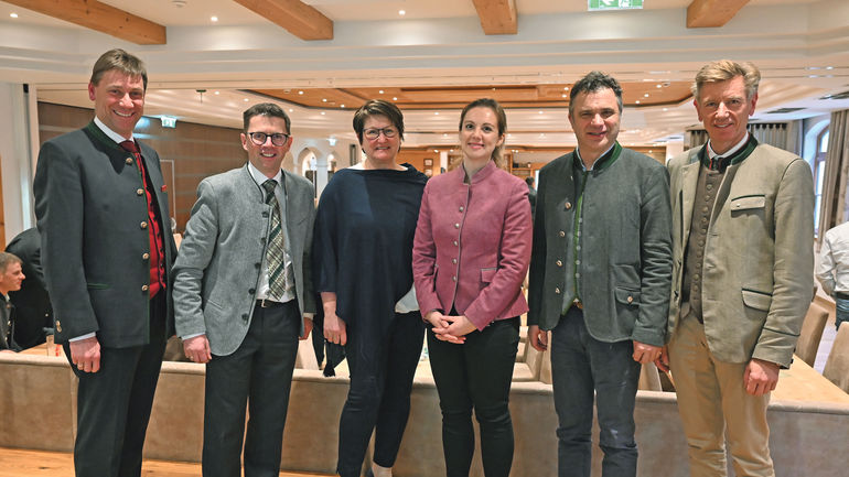 Kammertag im Lungau: Kammersekretär Andreas Kaiser, BBK-Obmann Johann Schitter, Bezirksbäuerin Roswitha Prodinger, Fachreferentin Susanne Mitterer, Präsident Rupert Quehenberger und Fachreferent Franz Lanschützer. © Christine Mooslechner