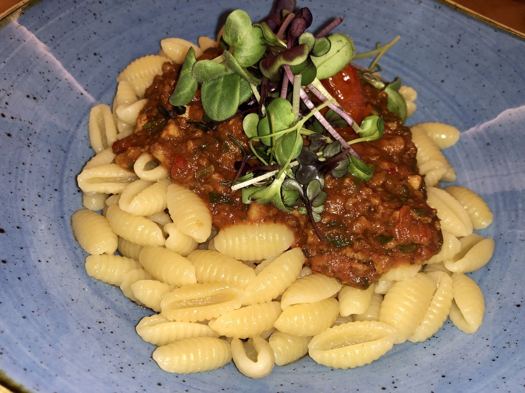 Zuerst faschiertes Fleisch in Olivenöl knusprig anbraten und darauf achten, dass sich keine kleinen Bröckerl bilden. Fleisch aus der Pfanne nehmen und geschnittene Zwiebel anbraten. Geriebenes Gemüse dazugeben mit allen Gewürzen, Salz und Pfeffer pikant abschmecken, mit Paradeisern und Gemüsesuppe aufgießen und gut durchkochen. Am Ende der Garzeit die geschnittene Petersilie dazugeben.