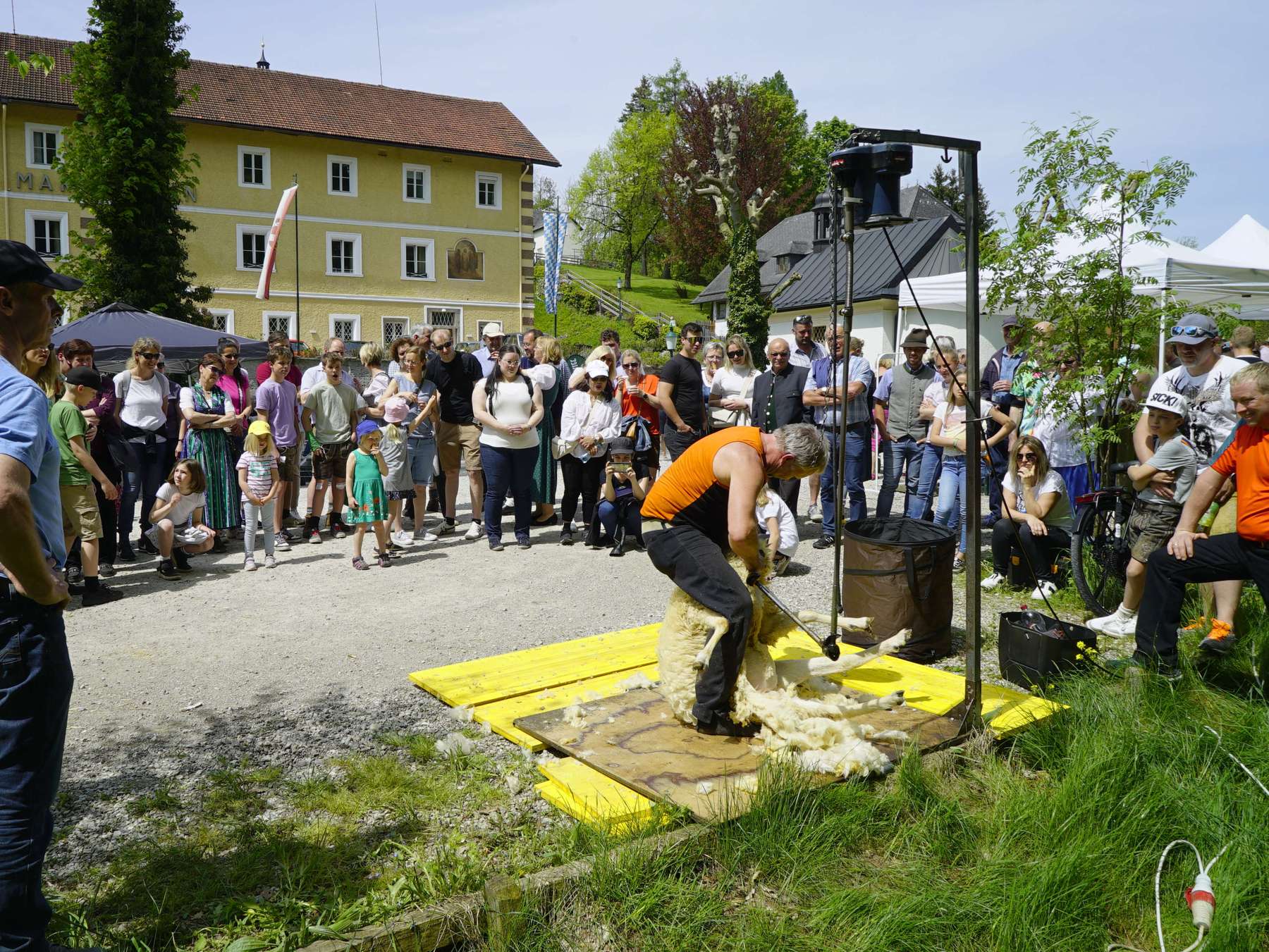 Sowohl die Schafschervorführung als auch die Hütehundevorführung stießen auf reges Interesse. Schafscherer Wolfgang Riess konnte auch viele Fragen der Besucher klären. © Kronreif