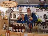 Imker haben jetzt Hochsaison, der frische Honig wird gerade geerntet. „Heuer war ein schwieriges Honigjahr, es war zu kalt und zu nass. Ich habe nur rund die Hälfte der sonst üblichen Menge“, bedauert Horst Mair, der verschiedene Sorten wie Creme-, Wald-, Akazien- und Kastanienhonig herstellt. Kastanienhonig ist eine der gesündesten Sorten, da er einen sehr hohen Anteil an Antioxidantien und Mineralstoffen hat. Auch selbst gemachte Liköre und Met sowie Bienenwachskerzen haben Horst und seine Frau Fini im Angebot.
