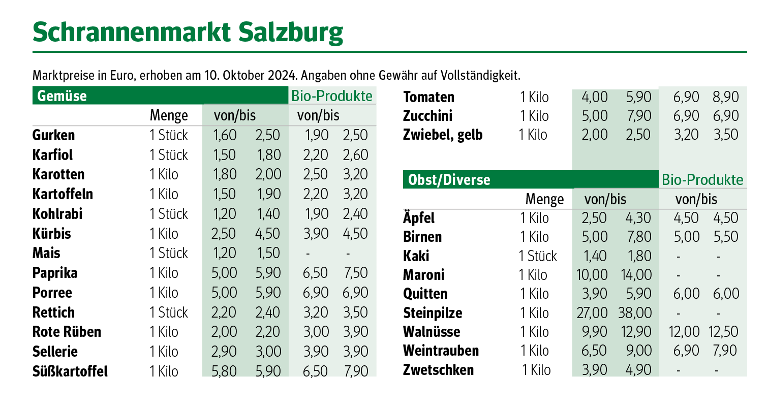 Zum Fermentieren sind an sich alle Gemüsesorten geeignet, besonders gut funktioniert es aber mit Gemüse, das nicht zu weich ist, wie etwa Kürbis. Dieser hat jetzt Hochsaison und ist auf der Schranne in vielen verschiedenen Sorten zu finden. Auch Pilze können auf diese Weise haltbar gemacht werden. An vielen Ständen werden derzeit Steinpilze in bester Qualität angeboten. Man kann sie in der Salzlösung z. B. zusammen mit Thymian und Lorbeerblättern fermentieren lassen.