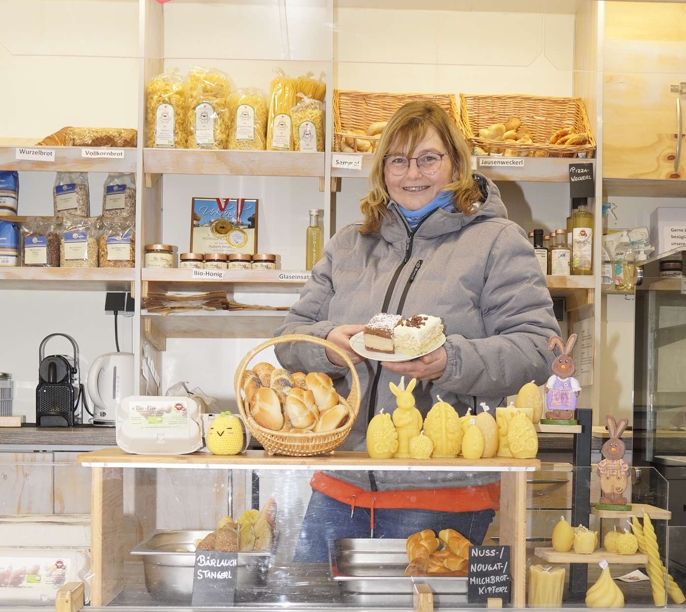 Der Bürgermeister betreibt hier selber einen Bosnastand, an dem viel Betrieb herrscht. „Ich habe zehn Jahre Erfahrung in der Gastronomie, immer schon am Würstelstand“, wie der AHS-Lehrer lachend betont. Viele Ebenauer lassen sich Bosna und Burger schmecken und schätzen offensichtlich einen netten Ratscher mit ihm. Eine wichtige Säule des Marktes ist Oberedbäuerin Johanna Neureiter, die eine Vielfalt an Produkten anbietet. Ihre selbst gemachten Kuchen sind ebenso gefragt wie ihr Gebäck. Eier, Nudeln, Liköre etc. gibt es auch. Ihr Mann Hubert und Tochter Magdalena sind Imker, daher hat sie auch Biohonig und Bienenwachskerzen.