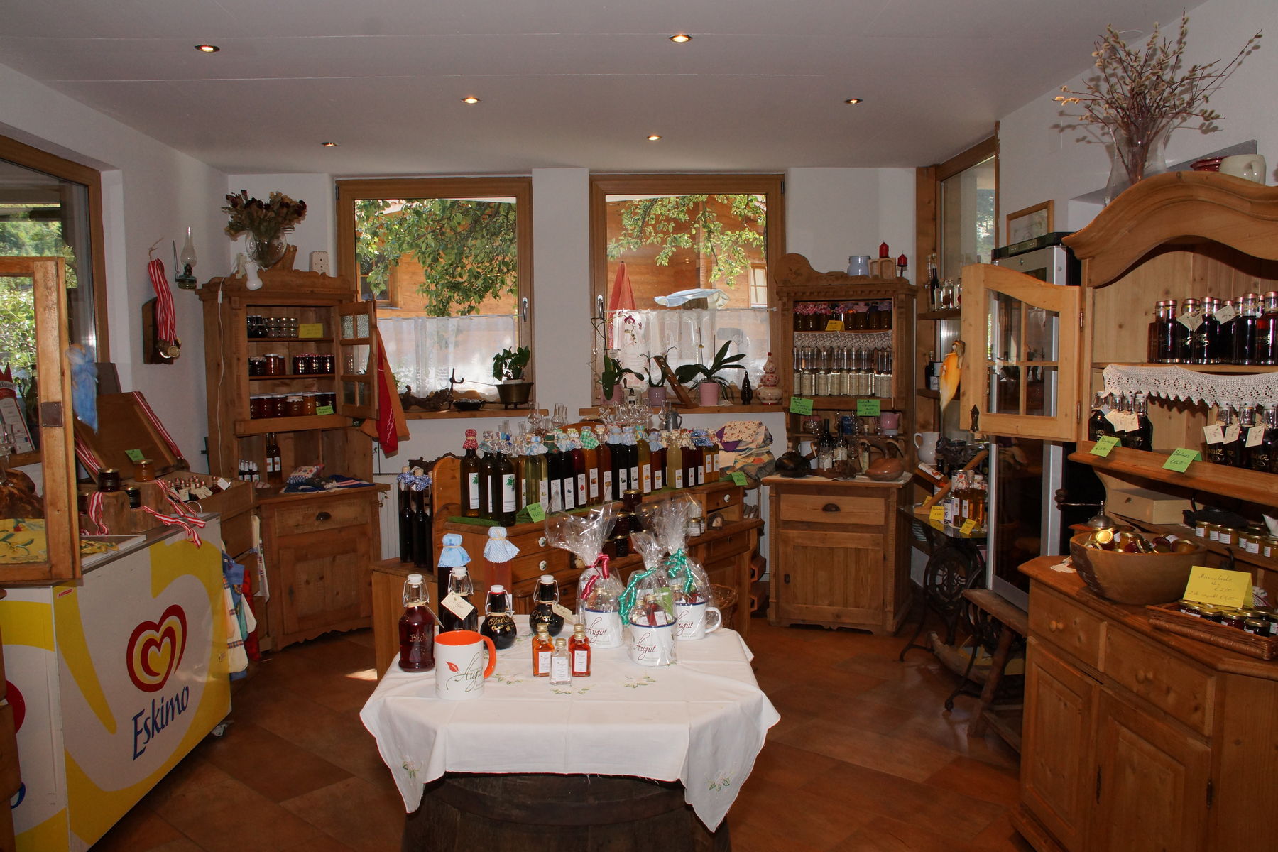 Im Hofladen vom Augut herrscht eine heimelige Atmosphäre, die Produkte werden in schönen, alten Bauernkredenzen präsentiert. Bereits vor 15 Jahren begannen Ingeborg und Josef mit der Direktvermarktung am Hof, Melanie führt jetzt das Werk ihrer Eltern fort. Die Vielfalt und die Qualität der eigenen Produkte sind längst ein Markenzeichen der Familie, die bereits viele Auszeichnungen erhalten hat. Dieses Jahr konnten in Wieselburg wieder insgesamt neun Medaillen erzielt werden.