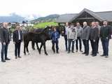 Lizzy aus der Zucht von Johann Hedegger erzielte mit 2.200 € den Tageshöchstpreis bei den Stutfohlen. Im Bild BBK-Obmann Florian Brunnauer, LK-Präsident Rupert Quehenberger, Obmann Johann Hedegger, Käufer Patrik Lach, Johann Hedegger sen., Obmann Anton Renn, Vize-Bgm. Christian Eder, Dipl.-Ing. Johann Wieser, Bürgermeister Karl Huemer © Lanschützer