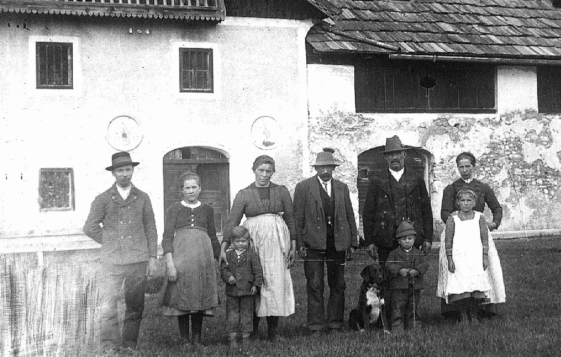 Familienfoto vor dem Müllner­bauernhof in Unternberg © Archiv