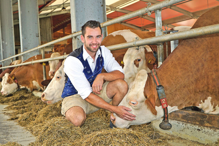 Beim Madlbauer von Tobias Riedlsperger aus Leogang werden Pustertaler Sprinzen gezüchtet. Rund acht Mutterkühe und ein Stier der beliebten Rasse der k. u. k. Monarchie hält der junge Pinzgauer Landwirt. © Archiv