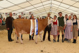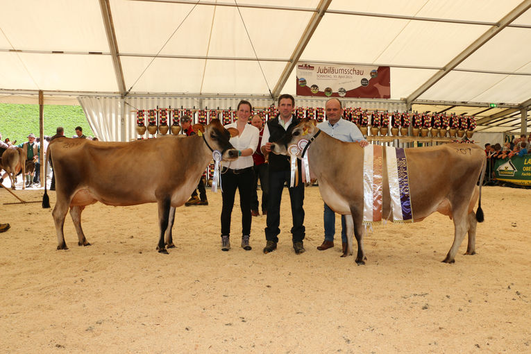 In der kleinen, aber feinen Gruppe der Jersey-Kühe zeigten die Züchter, dass eben diese kleinrahmigen Tiere eine perfekte Futtereffizienz aufweisen, welche sich durch eine gute Milchleistung und sehr hohe Inhaltsstoffe zeigt. Einen vollen Erfolg konnte die milchtypische Kuh Kira (VJ Perez x DJ Broiler) vom Betrieb Monika Weiß, Hundsalz in Flachau, verbuchen. Sie bestach durch ihren tiefen Rumpf und perfekt ausbalanciertes Euter und holte sich somit beide Titel als Gesamtsiegerin und Gesamteutersiegerin.