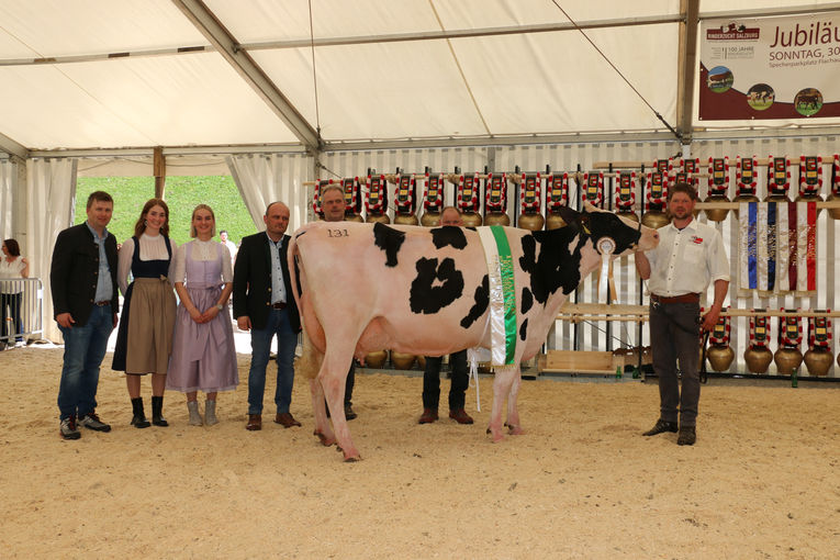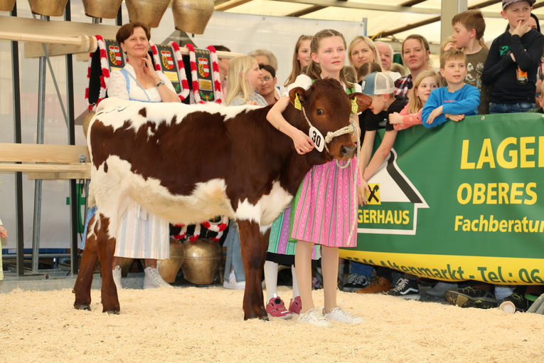 Bei einer sehr hohen Qualität an aufgetriebenen Tieren in der Gruppe der Rasse Pinzgauer kam der Preisrichter nicht an der in der zweiten Laktation stehenden Nikol (ScH Tornado x Rat) vom Betrieb Franz Laubichler, Thurnhof in Flachau, vorbei. Sie bestach durch ihr exzellentes Fundament und ihr sehr gut ausbalanciertes Euter in allen Merkmalen und holte sich somit den Gesamtsieg.