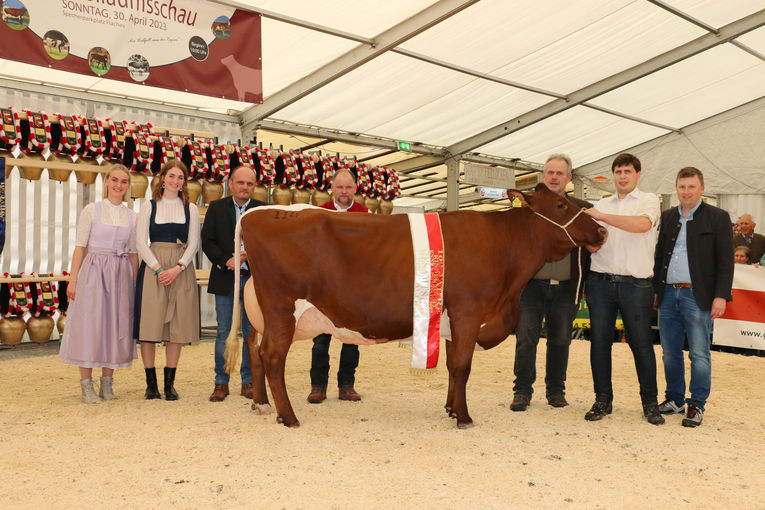 Zur Gesamteutersiegerin kürte Bruno Deutinger die in der dritten Laktation stehende Kuh Enzian (Dreamboy Red x Defoe Red) vom Betrieb Maria und Andreas Haym, Untersulzberghof in Radstadt. Sie überzeugte durch ihre Ausbalanciertheit im Vor- und Hintereuterbereich sowie durch eine exzellente Aufhängung des Euters.