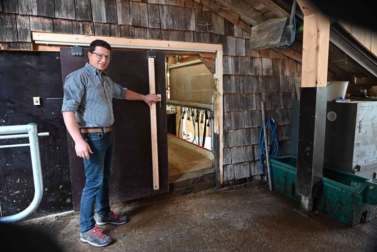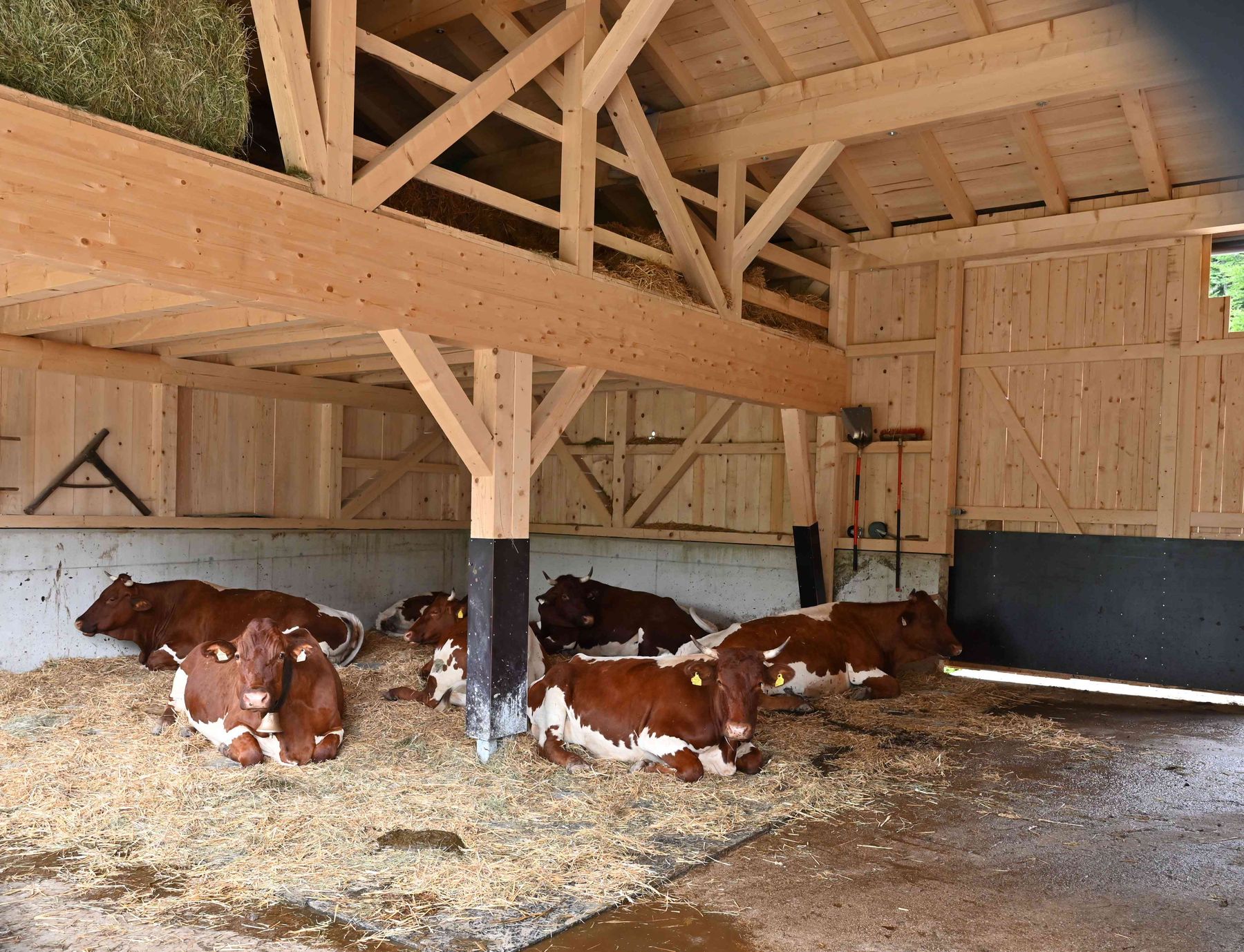 Jetzt haben sich aber Alexander und Katharina selbst in die Almwirtschaft vertieft und ihre Leidenschaft dazu entdeckt. Sechs Almsommer haben Alexander und Katharina die Alm sozusagen im Nebenerwerb geführt. Beide sind nach der Stallarbeit ihrem Beruf nachgegangen, Alexander als Verkäufer bei der Raiffeisen-Werkstätte Saalfelden und Katharina als Physiotherapeutin. 2022 ist der Entschluss gereift, in die Alm kräftig zu investieren und die Gebäude auf professionelle Beine zu stellen. So wurde aus dem alten Stall ein Stüberl und eine Wirtschaftsküche ausgebaut. Ein großer Sprung nach vorne ist nun der neue Almstall, der für die zehn Milchkühe Fressplätze, und ausreichend Liegeplatz sowie einen Melkstand bietet.
