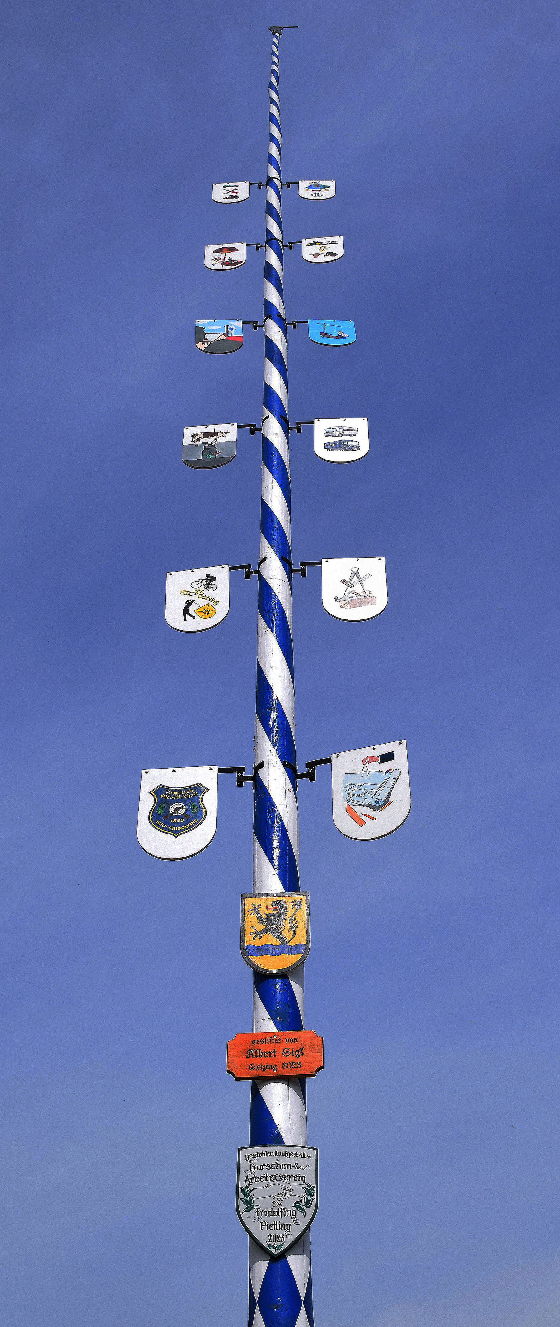 Die schönsten Maibäume sind mit Zunftschildern verziert. Allerdings haben Kränze mehr Symbolwert für das wiederkehrende Glück. © Standl