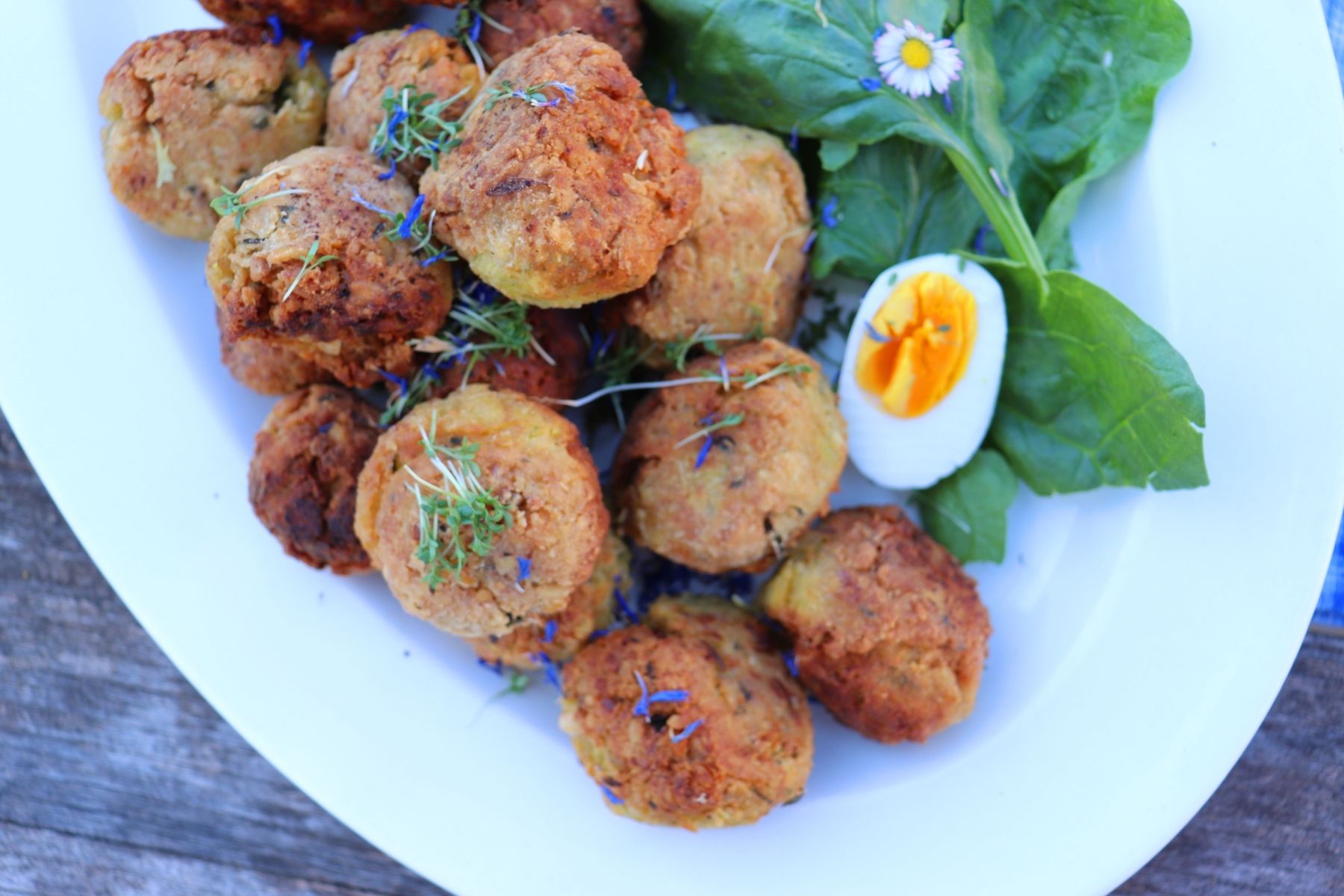 Kichererbsen am Vortag nach Anleitung einweichen und kochen. Zwiebeln, Knoblauch, Petersilie klein hacken. Die Kichererbsen fein pürieren und mit dem Kleingehackten vermengen und würzen. Die Eier untermischen und mit den Semmelbröseln die Masse binden, bis sie gut formbar ist. Mit feuchten Händen kleine Bällchen formen und im Fett herausbacken.