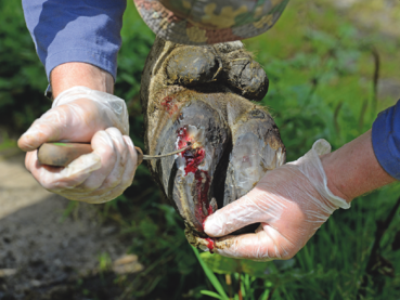 Neben Blutergüssen und Abs- zessen in den Klauen sind die häufigsten Klauenerkrankungen auf der Alm die Zwischenklauenentzündung und die Mauke. In beiden Fällen handelt es sich um Bakterien, die in die Haut eindringen und sich dort vermehren. Dies führt zu hochgradig schmerzhaften Entzündungen in der Haut und Schwellungen, oft bis zum Vorderfußwurzelgelenk hinauf.