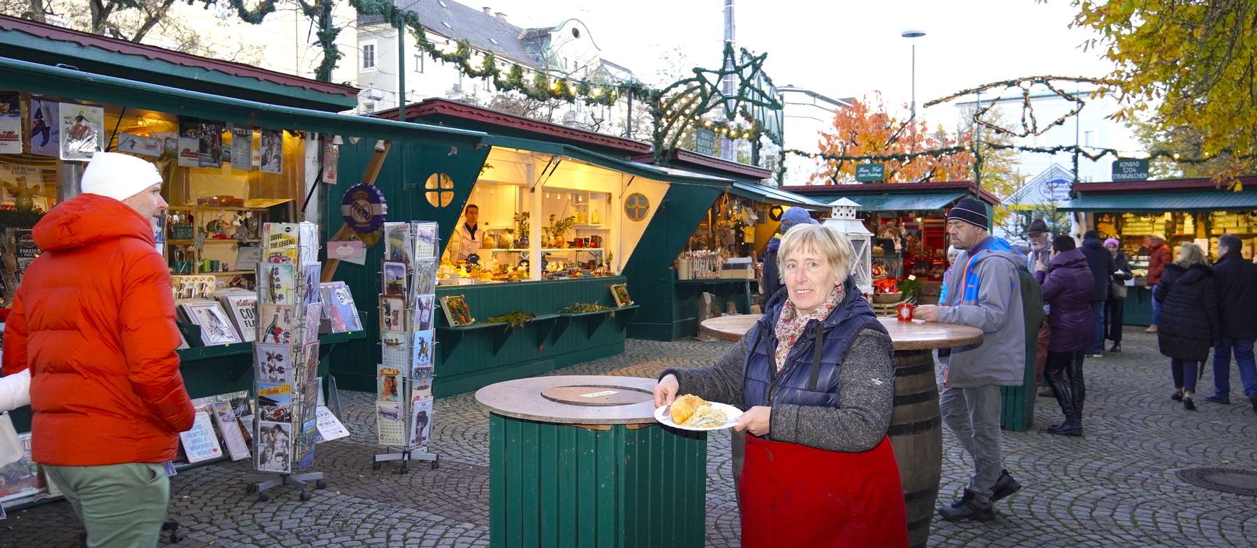 "Am Anfang war alles noch sehr schlicht, es gab kein warmes Essen. Wir haben nur Speckbrote und Leberknödel zum Mitnehmen gehabt“, erzählt die Tennengauerin. Sohn August führt die Tradition fort und betreut mit seiner Frau Juliane zwei Hütten am Halleiner Weihnachtsmarkt.