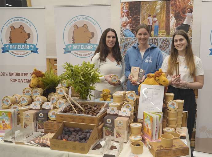 „Dattelbär“ ist die Firma von Dominik Gräf, einem Landwirt aus Niederösterreich. Er setzt auf gesunde Naschereien mit Datteln und ohne Zucker.  Die Besucher kosteten sich hier durch Schokolade und Lebkuchen.