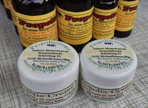 Sie stellt aus der harzigen Substanz auch Cremen und andere Pflegeprodukte her. Die Imkermeisterin schwört auch auf die vielen positiven Eigenschaften von „Gelée Royale“. Das Futter der Königinnen enthält besondere Stoffe, die das allgemeine Wohlbefinden verbessern und revitalisierend wirken. Romana Reichl ist auf der Schranne zu finden, sie verkauft am Kunsthandwerksmarkt Seeham und St. Gilgen sowie am Weihnachtsmarkt in Hallein.