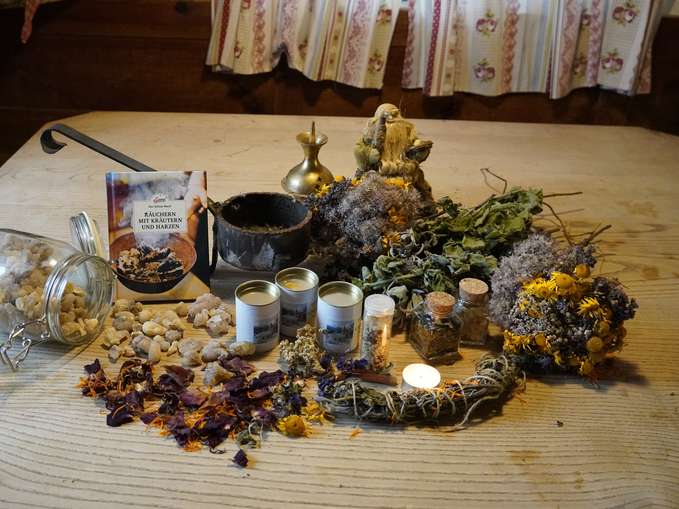 Sie bietet auch Kräuterwanderungen und Räucherworkshops an. „Für die Raunächte sind Wacholder, Beifuß, Johanniskraut und Weihrauch wichtige Bestandteile. Auch die Kräuter aus den Kräuterbuschen sollen jetzt verwendet werden“, erklärt die Lutzbäuerin. Neu im Sortiment hat sie drei Kräuterteemischungen, die genau auf die Bedürfnisse von Frauen, Männern und Kindern abgestimmt sind. Im Seniorenheim in Lofer, wo Barbara beschäftigt ist, werden auch ihre Salben sehr geschätzt.
