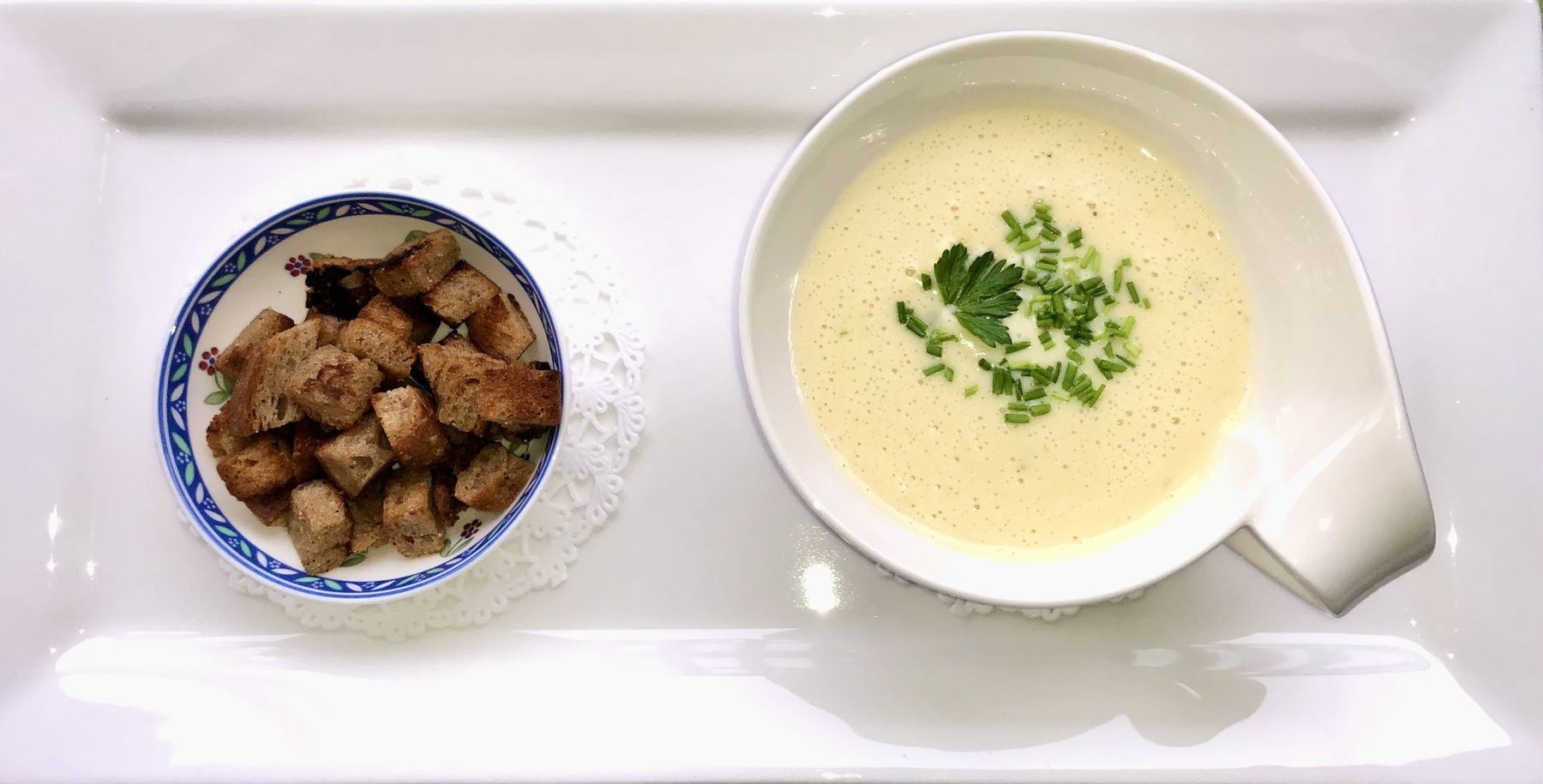 Gehackte Zwiebel in Butterschmalz anschwitzen lassen und mit Mehl stauben. Gut durchrösten und mit Rindsuppe aufgießen. Suppe fünf Minuten kochen. Inzwischen die Germ mit etwas Rahm glattrühren und in die Suppe geben. Kurz aufkochen und mit gerösteten Brotwürfeln und Schnittlauch servieren.