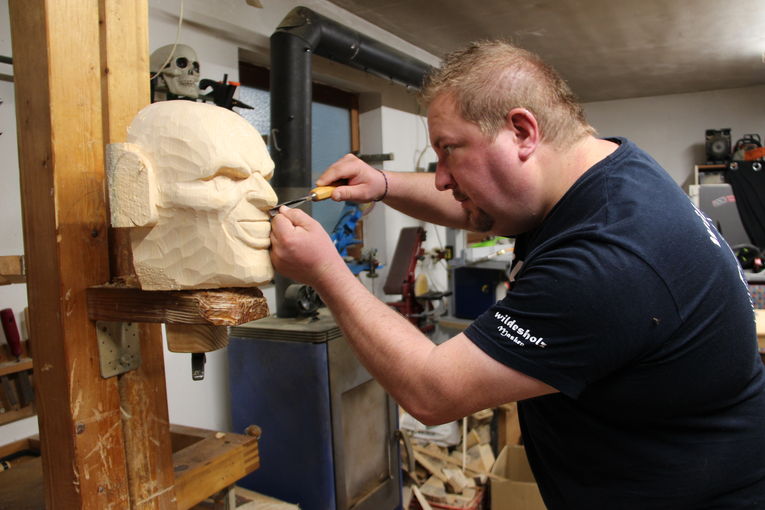 Rustikale Geschenke, Masken und vieles mehr stellt Franz mit dem innovativen Werkstoff Holz her.