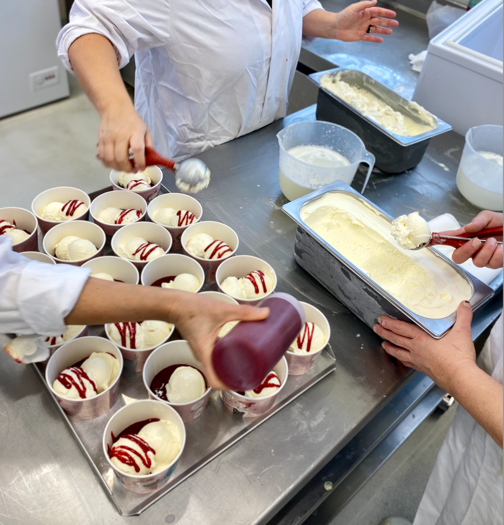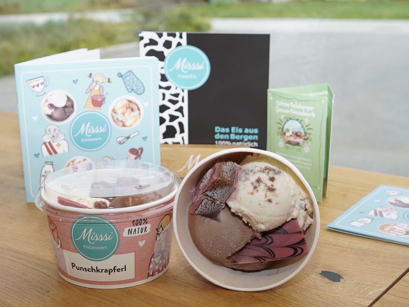 Wichtig ist ihr auch, dass für Misssi-Produkte nur natürliche Zutaten verwendet werden. Auf Geschmacksverstärker und sonstige Zusätze wird verzichtet. „Darum wird nichts zugekauft, wir stellen alles selber her“, betont die Chefin. Das gilt auch für Saucen und Dekorationen für das einzigartige „MehlspEis“ Sortiment. An diesen köstlichen Dessert-Kreationen tüftelt das ganze Team. Es sind Kunstwerke im Becher, die Mehlspeisen und Eis kombinieren. Sorten wie „Kaiserschmarrn“, „Apfelstrudel“ und „Punschkrapferl“ zeichnet die Liebe zum Detail aus. Sogar die klassische Mozartkugel wird selber gemacht.