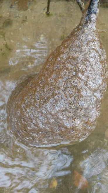 Das schwammartige Moostierchen wird wissenschaftlich "Pectinatella magnifica" genannt. Im Sommer sind sie mittlerweile an vielen Teichen des nördlichen Waldviertels durch gallertartige Kugeln zu sehen, die eine Kolonie dieser Art darstellen. Die Einzeltierchen der Kolonie sind sehr klein und bleiben im Millimeterbereich. Mittels Tentakelkranz erzeugen sie einen Wasserstrudel und filtern Plankton - ihre Nahrung - aus dem Wasser. In Mitteleuropa treten die Gallertkugeln, abhängig von der Wassertemperatur, üblicherweise zwischen Juni und September auf. Bei günstigen Bedingungen können einzelne Kolonien in seltenen Fällen bis zu 25 kg schwer werden. Die Durchschnittsgröße der zu 99% aus Wasser bestehenden Gallertkugeln bleibt meist unter 0,5 kg. Trotz ihres fremdartigen Aussehens sind die gelblichgrünen, festen Gallertkugeln ungiftig. Bisher sind auch kaum Tiere bekannt, die diese als Nahrung nutzen.