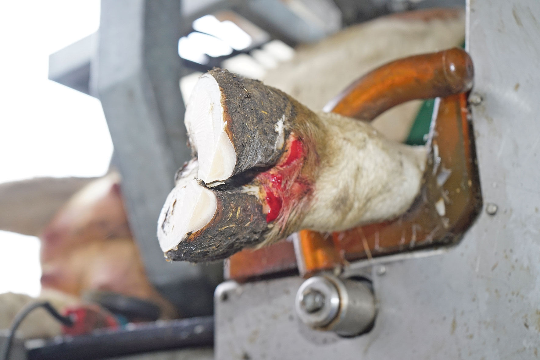 „Diese Typen im Stall zu identifizieren, ist oft nicht leicht. Hierbei gilt eine exakte Dokumentation, wann welche Kuh bei welcher Klaue wie oft an einer Läsion leidet“, stellt Jost fest. Grundsätzlich ist eine zwei- bis dreimal jährlich stattfindende funktionelle Bestands-Klauenpflege zu empfehlen, um auch andere Klauendefekte in den Griff zu bekommen. „Das Schwierige ist oft, dass die Kuh kaum lahmt, obwohl Mortellaro schon voll im Gange ist. Man sieht es oft nur, wenn die Kuh einen Fuß entlastet. Während der Stallzeit sollte man auf die Gangbilder der Kühe achten“, beschreibt der Klauenpfleger.