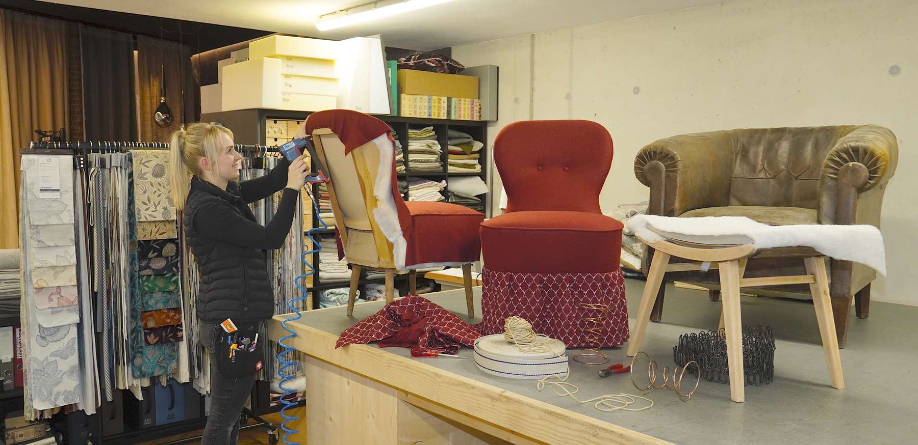 Am liebsten restauriert die junge Meisterin alte Möbelstücke. "Es gefällt mir, Sesseln und Sofas, die bereits seit Jahrzehnten in Gebrauch sind, ein neues Leben zu ermöglichen. Das ist ja auch viel sinnvoller, als ständig etwas Neues zu kaufen", betont sie. "Die Kunden, die mir ihre alten Möbel bringen, haben dann so viel Freude damit, wenn sie renoviert sind. Die Sachen sind dann ja nicht nur wieder richtig schön, sondern viel bequemer, weil ich ja auch das Innenleben austausche."