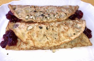 Einen feinen Palatschinken-Teig mixen, rasten lassen und diese dann in Butterschmalz ausbacken. Für die Sauce verlesene Preiselbeeren mit Wasser und Zitronensaft ca. 15 Minuten kochen lassen. Danach den Gelierzucker fünf Minuten einkochen, Gelierprobe machen und falls nötig noch etwas Zucker zugeben. Die Palatschinken mit der heißen Sauce bestreichen, einrollen oder zusammenschlagen und mit Zucker bestreut servieren.
