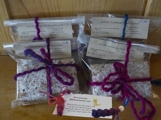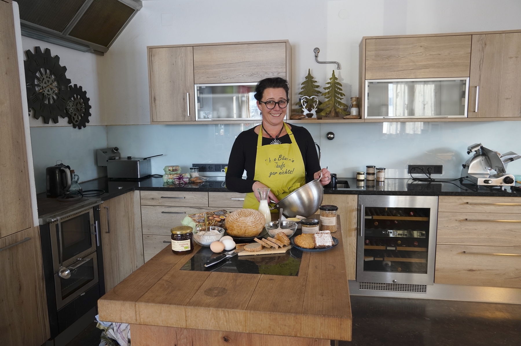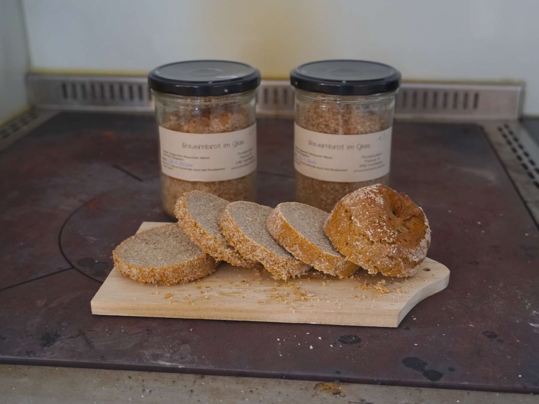 Ihre Spezialität ist ein im Glas gebackenes, haltbares Bauernbrot. „Das Brot haltbar zu machen war eine Herausforderung. Ich habe ein bisschen experimentiert und denke, es ist jetzt gut gelungen“, schildert Sigrid. Das Brot schmeckt hervorraggend, man kennt kaum einen Unterschied zu ihrem regulär gebackenen Brot. Es gibt auch ausgezeichneten Marmorkuchen im Glas. Im Dezember hat sie Kekse und Lebkuchen angeboten. Auch Gulasch und Leberknödel sind geplant, das hängt davon ab, was am Hof zur Verfügung steht.