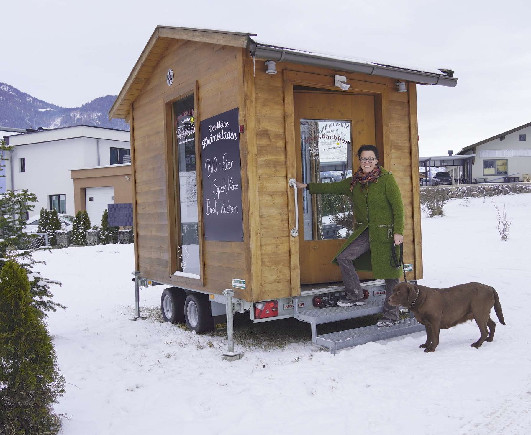 Seit Mitte Dezember steht kurz vor Saalfelden ein mobiler Krämerladen direkt an der B 311. Ortsbäuerin Sigrid Auer bestückt ihn mit ihren selbst gemachten Produkten, aber auch mit anderen Lebensmitteln und Getränken. Es gibt Milch, Butter und Käse der Pinzgau Milch, Speck- und Wurstwaren der Metzgerei Rass, darunter den beliebten „Hupfi-Leberkäse“. Für den kleinen Hunger zwischendurch kann man sich aus dem Automaten auch Snacks herausdrücken. Am Mussbachhof von Sigrid und Günter Auer in Saalfelden werden Zimmer und Ferienwohnungen vermietet. Außerdem gehören einige Stellplätze für Campingwohnmobile zu dem Bio-Betrieb.