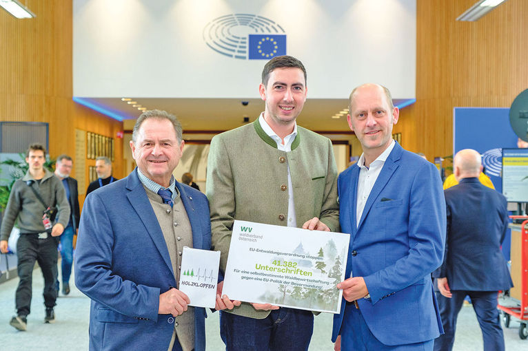 Kaniber die „Salzburger Erklärung“ unterzeichneten, die insbesondere eine Abänderung und damit verbunden eine Aussetzung der bereits rechtskräftigen EU-Entwaldungsverordnung forderte. Um die Initiative der beiden Minister zu unterstützen, startete der Waldverband Österreich gemeinsam mit zahlreichen anderen Verbänden aus dem In- und Ausland eine Online-Petition, die in kürzester Zeit mehr als 41.000 Unterschriften bekam. Mit Abschluss der Petition folgte der nächste Schritt im Sommer 2024: Die Petition wurde im Petitionsausschuss des EU-Parlamentes von Waldverbandsobmann Rosenstatter eingereicht. Hier kann jeder europäische Bürger sein Anliegen einbringen, was mehrere tausend Mal pro Jahr passiert. Nur wenige dieser Eingaben werden für zulässig erklärt, eine Handvoll wird in den Sitzungen persönlich behandelt und vorgetragen. Mitglied im Petitionsausschuss ist der österreichische Abgeordnete Alexander Bernhuber, der sich stark für die Annahme der Petition des Waldverbandes eingesetzt hat.