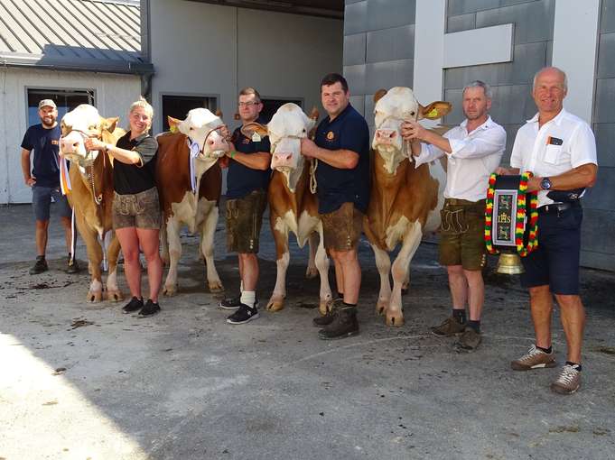 So schaffte es in der Gruppe der Kühe mit vier Abkalbungen die Hugoboss-Tochter Paula von der Familie Übetsroider, den Gruppensieg und Eutersieg zu erringen. Sie stach mit ihrem breit angelegten, drüsigen Euter und dem hervorragenden Fundament dem Preisrichter sofort ins Auge. Als Krönung für die Familie Übetsroider konnte sogar noch der Champion alt an diese exzellente Kuh vergeben werden. Gekonnt vorgeführt wurde die Kuh von Lena Premm.