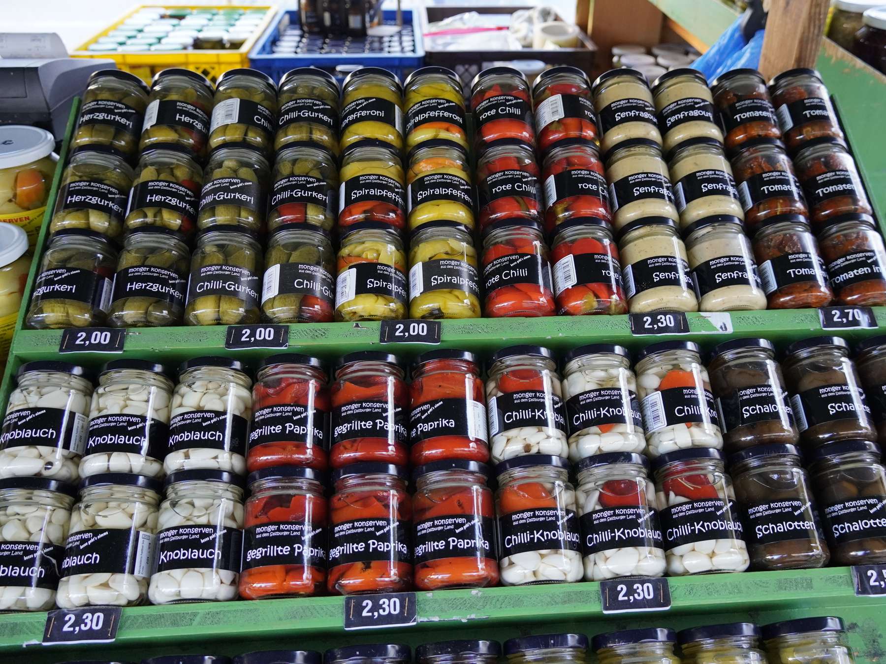 Im Angebot sind auch beste süß-saure Delikatessen wie gefüllte Paprika mit Sauerkraut und Gemüse sowie alle Arten von süß-sauren Gurken. Verwendet wird erstklassige Rohware, nach Möglichkeit aus der Region. Sie wird erntefrisch nach bewährten Hausrezepten verarbeitet. Das Motto von Familie Monger lautet: „Heute geerntet, morgen im Glas.“ Farbstoffe und Konservierungsmittel sind tabu.