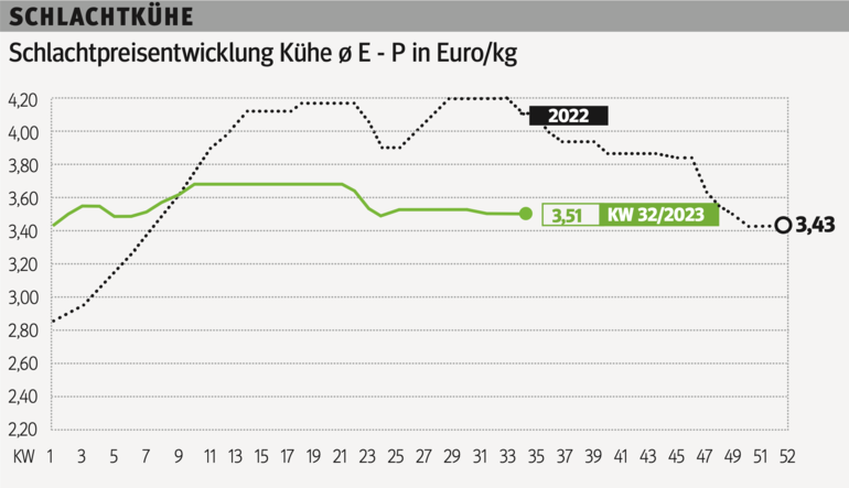 • Schlachtkühe: Niedriges Angebot am Schlachtkuhmarkt, Nachfrage verhalten; Biozuschläge sind rückläufig.
