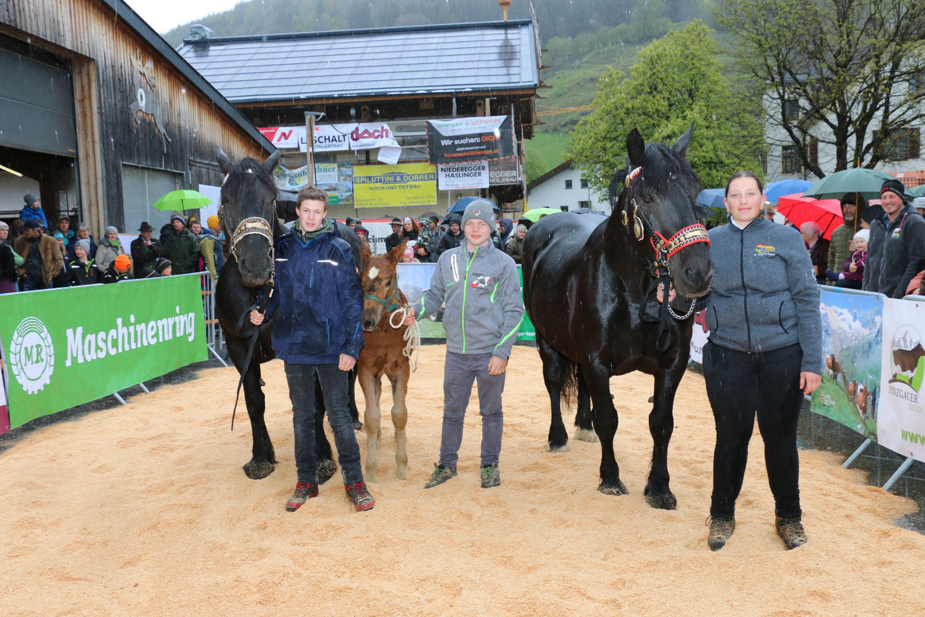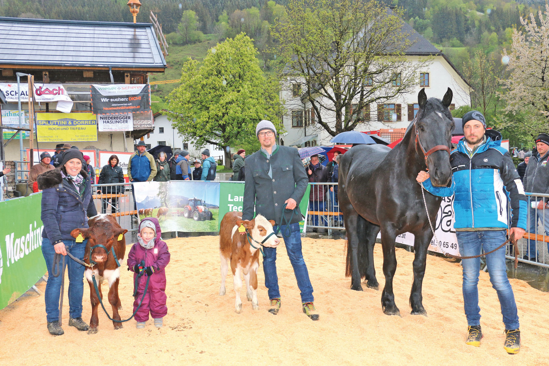 Im Anschluss wurden die Betriebe mit ihren Tieren dem breiten Publikum im Schauring vorgestellt. Moderiert wurde die Präsentation der Familien und Tiere durch die fachliche Kompetenz von Mathias Kinberger und Birgit Embacher. Das bunte Rahmenprogramm wie das Schülerranggeln mit 22 Teilnehmern, Ponyreiten, Kinderschminken und Vogelhäuschenbasteln fand bei den Besuchern großen Anklang.