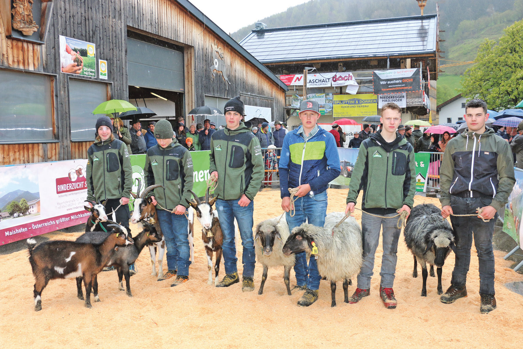 Sechs Schüler der LFS Bruck führten die Alpinen Steinschafe und Tauernscheckenziegen des Schulbetriebs vor. © Sendlhofer